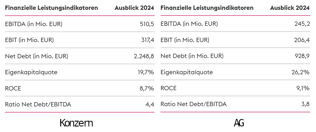 Für die Ausschüttung der Gewinn, genauer gesagt der abgeführte Gewinn, des Einzelabschlusses relevant. Hier wird ein EBIT von knapp über 200 Mio. EUR erwartet, ein sehr ähnlicher Wert im Vergleich zu 2023. Eine erwartete Gewinnausschüttung ergibt sich aus beiden Dokumenten aber nicht.