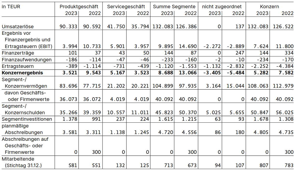 Im Schnitt hatte das Servicegeschäft in den Jahren 2022 und 2023 eine EBIT-Marge von 12%, ca. 4 Mio. EUR.